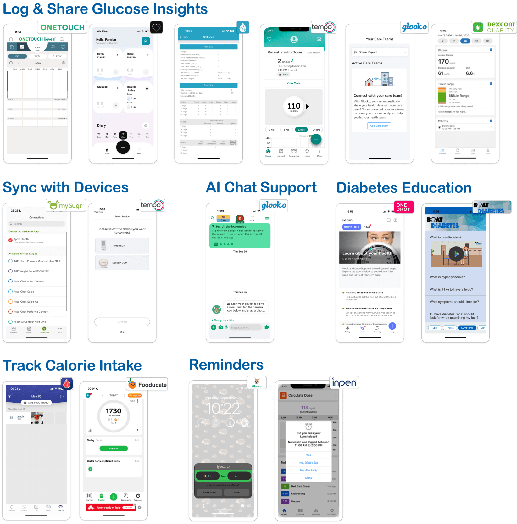Most diabetes apps lack bolus calculators, emergency support, and T1D-specific education, and are often device-dependent.