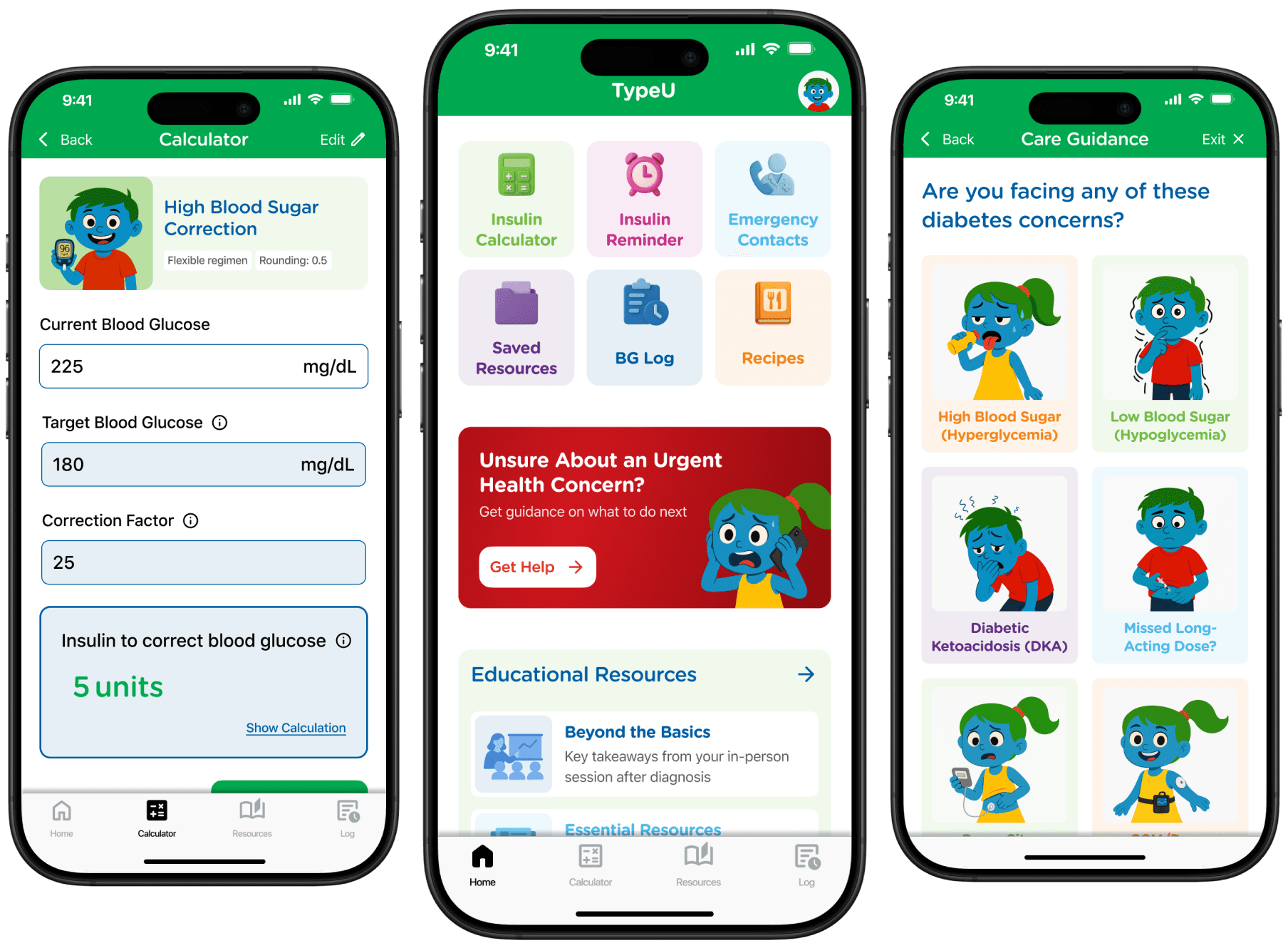 TypeU stands out as a T1D-specific app with an insulin calculator and evidence-based education, validated by CHOA for trust and reliability.