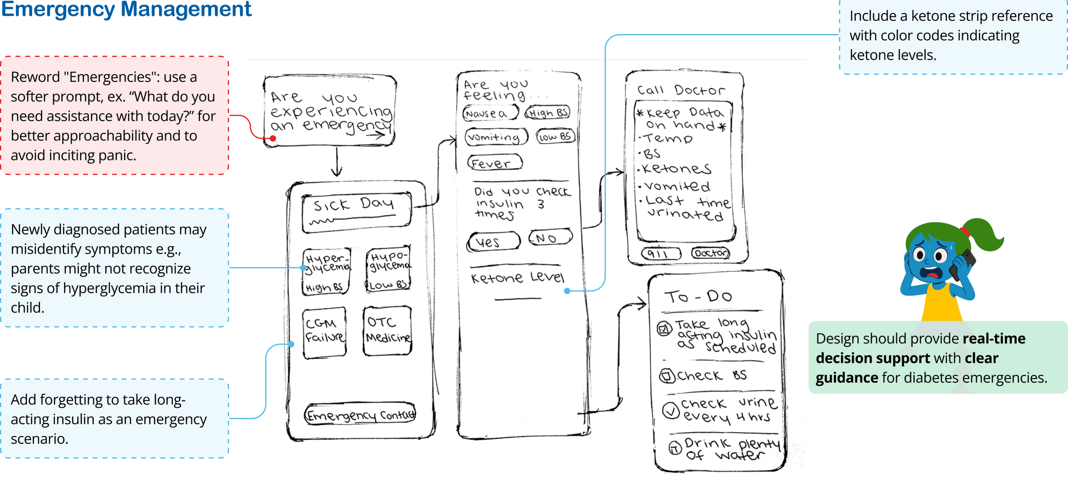 How might we design a decision support tool to help parents of newly-diagnosed T1D children confidently make informed care decisions while reducing stress and ensuring timely interventions?
