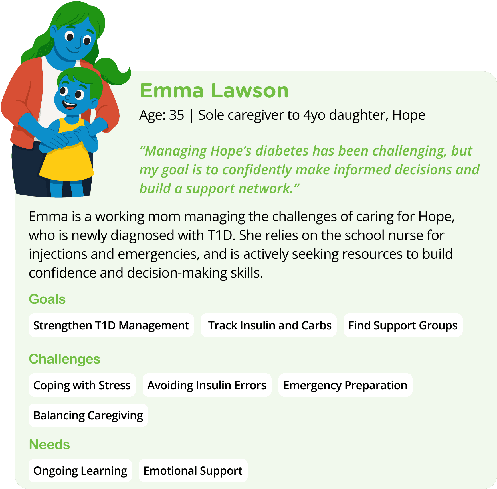 In collaboration with Children’s Healthcare of Atlanta (CHOA) and Emory Healthcare, I led the design and planning for revamping the TypeU app, built to support caregivers and children with Type 1 Diabetes. As the sole designer, I shaped the end-to-end user experience with a strong focus on inclusive design, trust, and usability.