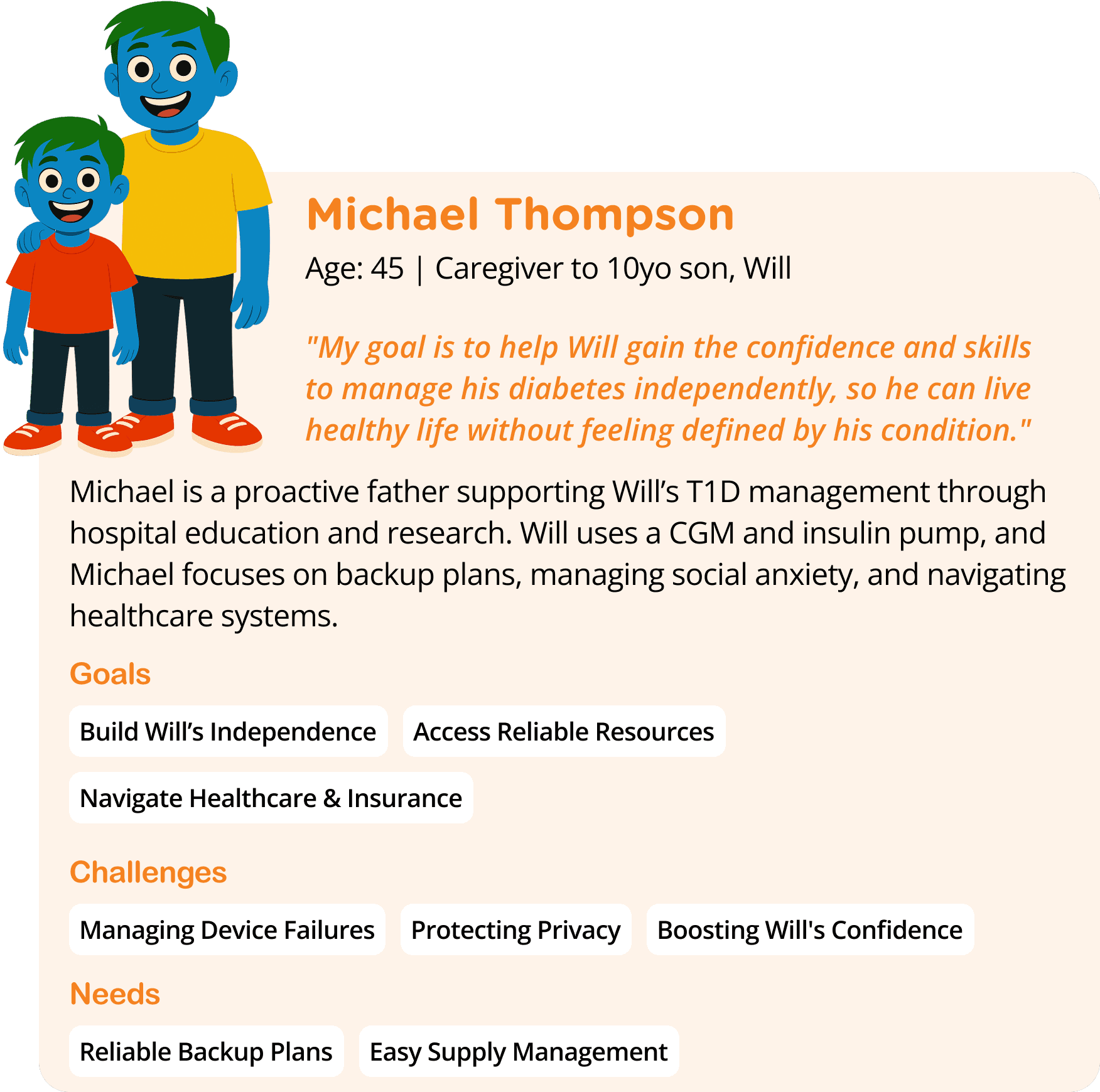 To explore caregiver challenges, processes, and behavioral changes throughout the child’s T1D diagnostic and management journey, and to gather clinician insights to improve the TypeU app.
