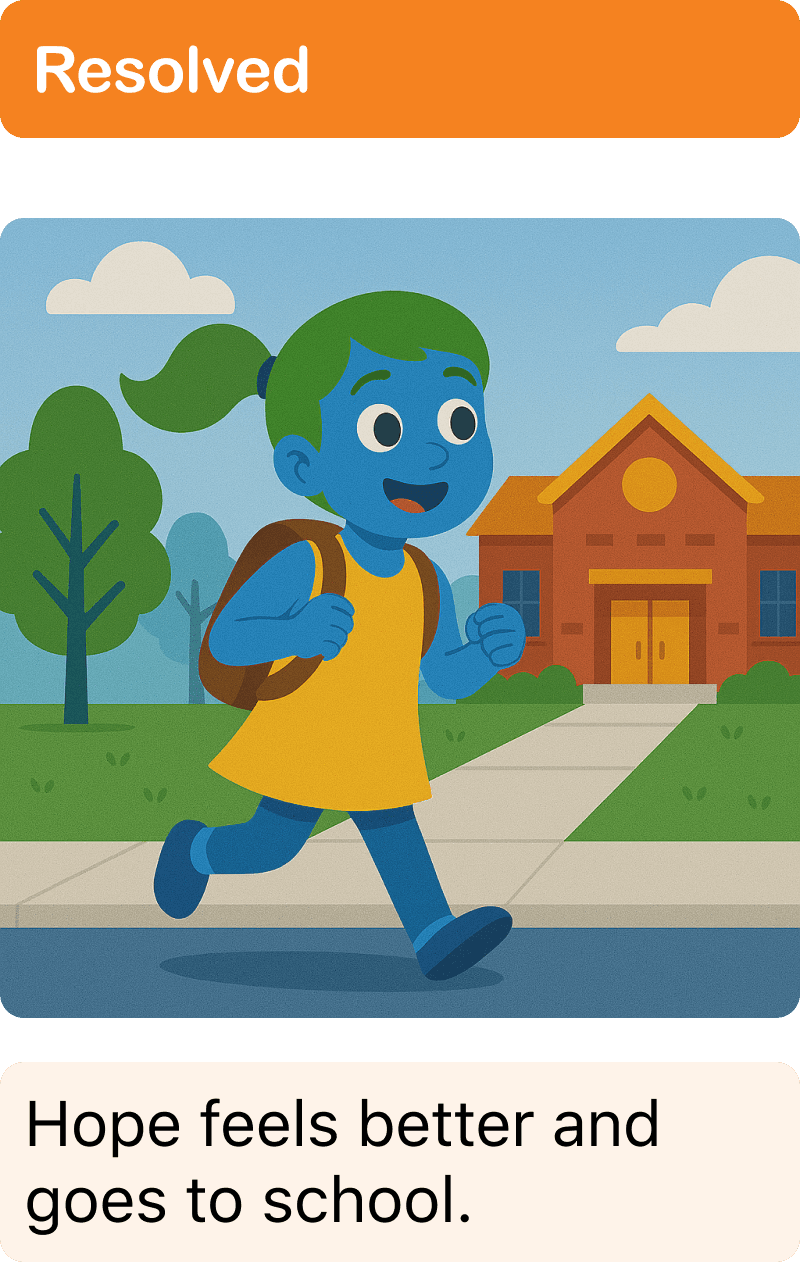 An easy-to-follow algorithm that helps parents navigate CHOA’s care protocols with symptom-based steps and visual cues for accurate, confident responses.